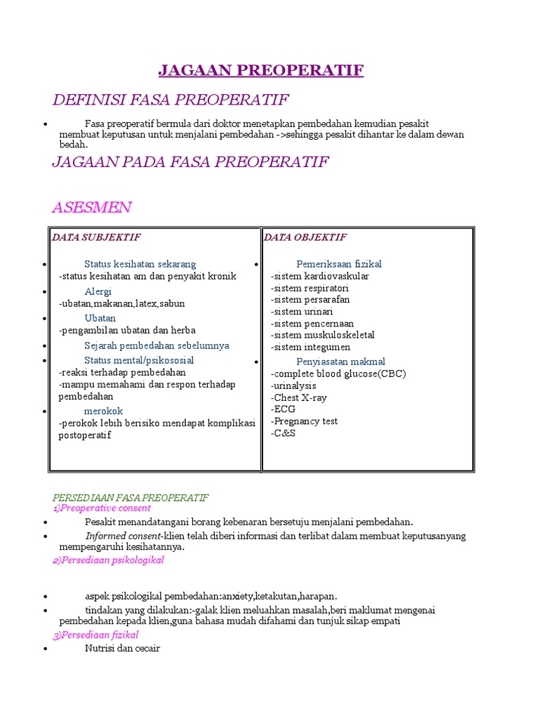 Penjagaan Sebelum Dan Selepas Pembedahan